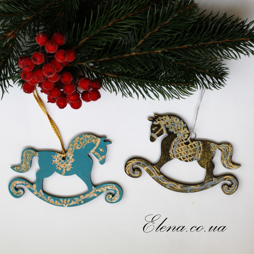 Ёлочная игрушка - подвеска в виде лошадки-качалки, расписанная вручную.