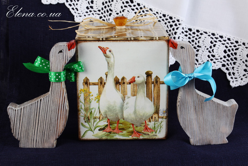 Декоративные фигурки гусей в набор не входят, они представлены отдельно Гусики.