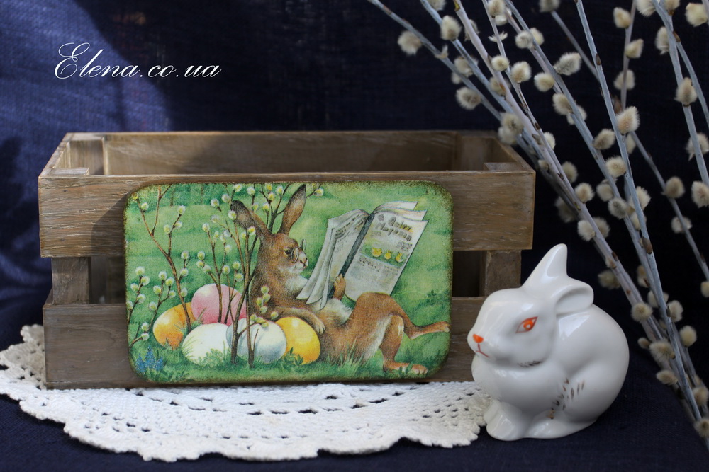 Накладки с разными изображениями! С одной стороны ящика - кролик, с другой - петушок и курочки.