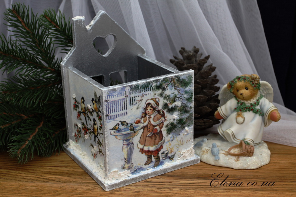 Замечательный подарок, возможно и новогодний. В отделке использован материал, имитирующий блестящий снег.
