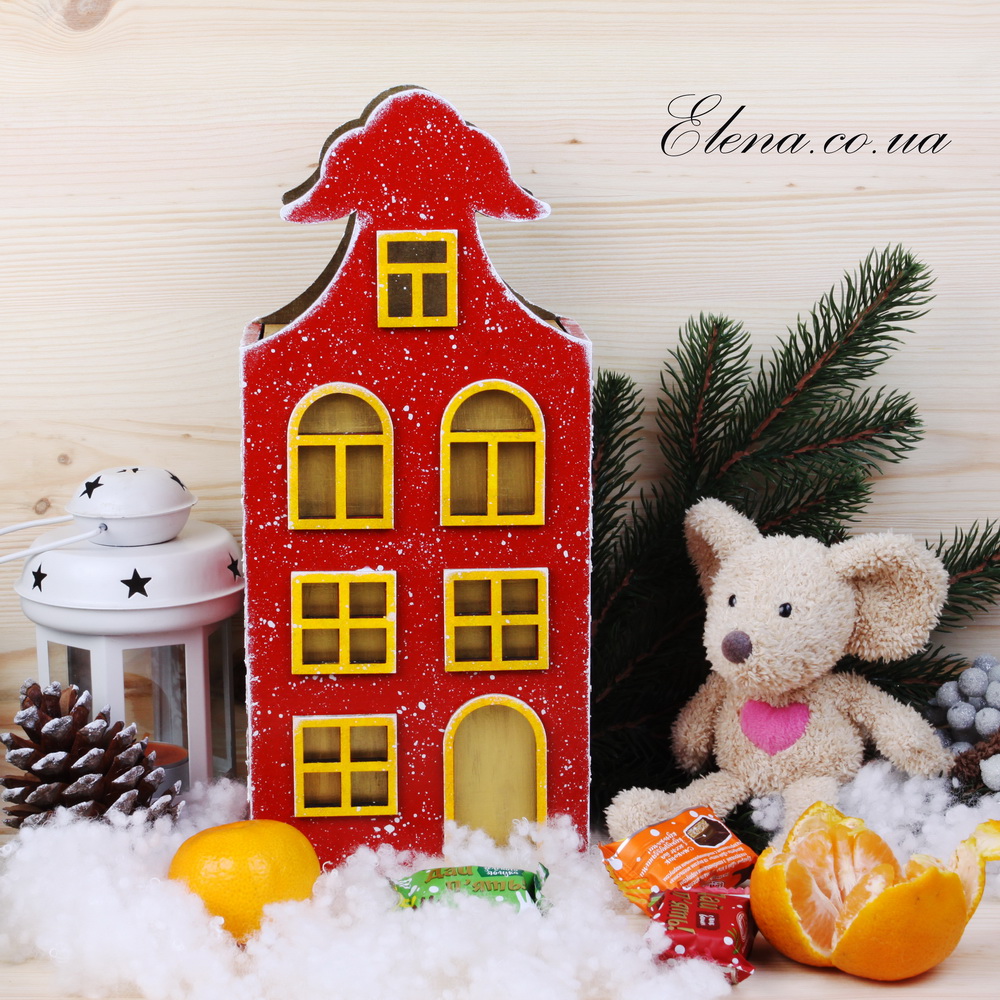 Яркий, эксклюзивный, незабываемый, уникальный - такими эпитетами будут вспоминать ваш подарок, если вы упакуете его в этот домик-короб. Внутри домика есть секрет - выдвижной ящичек, который можно чем-нибудь наполнить, например, конфетами. А ещё внутрь можно положить светодиодную гирлянду, тогда домик будет светильником.