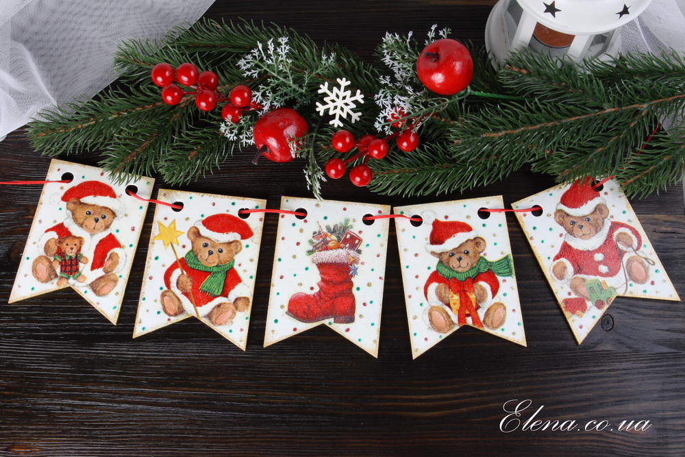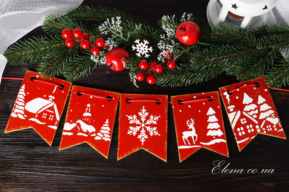 Прекрасное ёлочное или интерьерное украшение, замечательный подарок! Флажки украшены блёстками и очень красиво переливаются в лучах света. Декорированы с двух сторон.