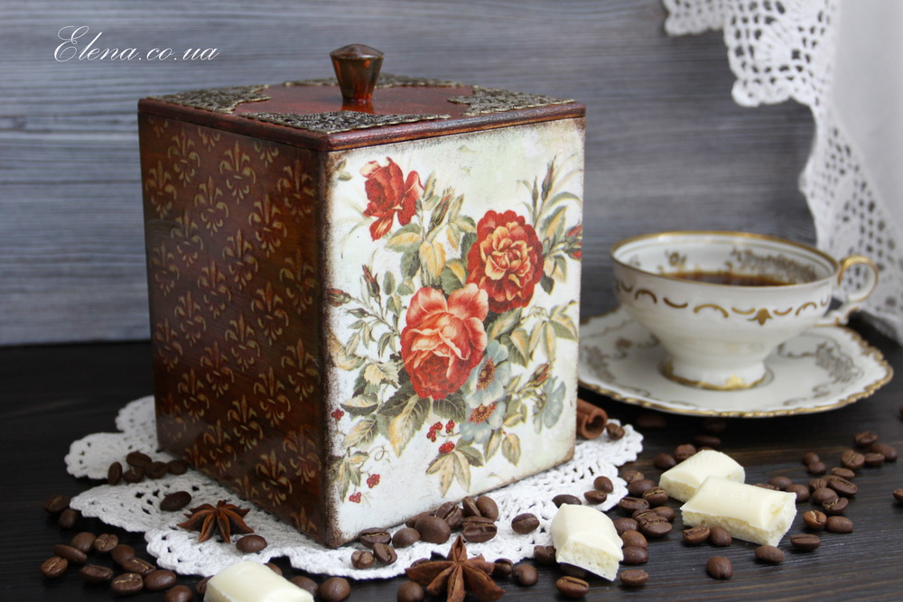 Короб, в котором могут храниться приправы или специи. Выполнен в стиле винтаж, искусственно состарен, украшен металлическими накладками. Внутри обработан раствором натурального кофе - пахнет божественно!