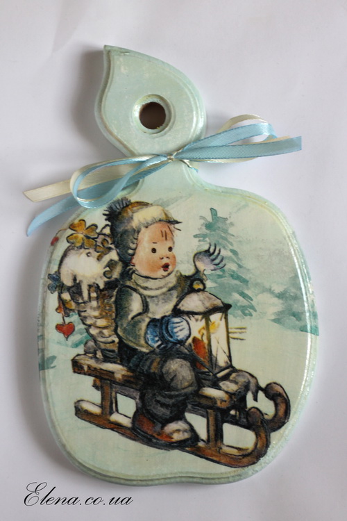 Доска для кухни с картинкой в стиле ретро, украшена бантиками в тон.