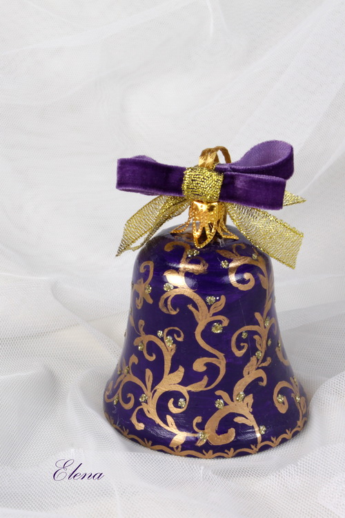 Керамический колокольчик, звенит нежным приятным звуком. Расписан вручную фантазийными узорами, украшен бантами из бархатных лент.