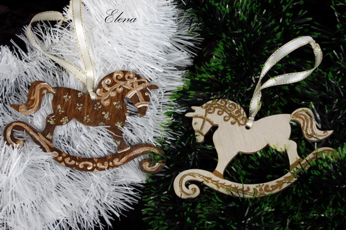 Ёлочное новогоднее украшение - подвеска в виде лошадки-качалки, расписанная вручную.