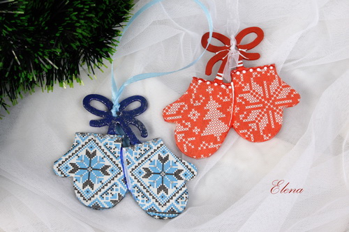 Новогоднее украшение - подвеска в форме пары рукавичек.