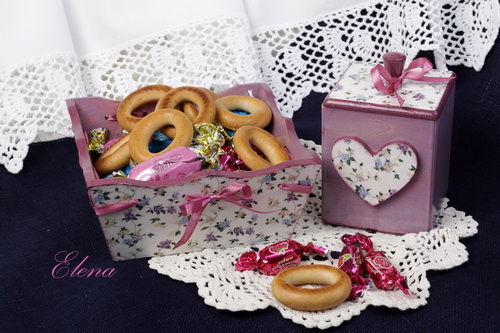 Нежный набор для кухни в сиреневых тонах - конфетница и небольшой короб для сыпучих продуктов.