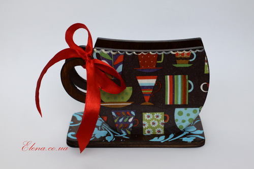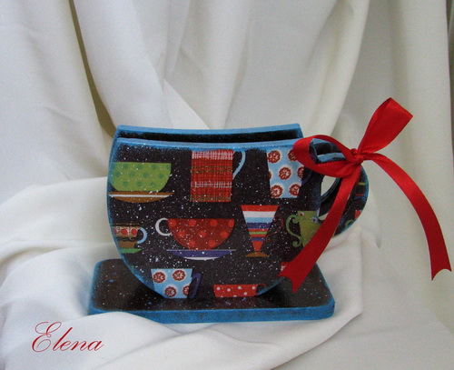 Подставка, в которую можно красиво и аккуратно поставить бумажные салфетки для сервировки стола. С одной стороны декорирована в технике декупаж, с другой нанесён объёмный рисунок. Дополнительный декор - симпатичный красный бантик.