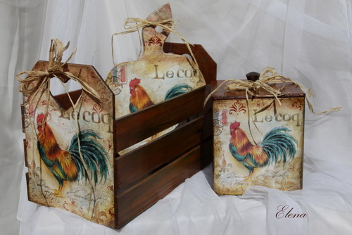 Колоритный петух, ручки-вырезы в форме сердечек, красота натурального мореного дерева - этот ящик никого не оставит равнодушным!