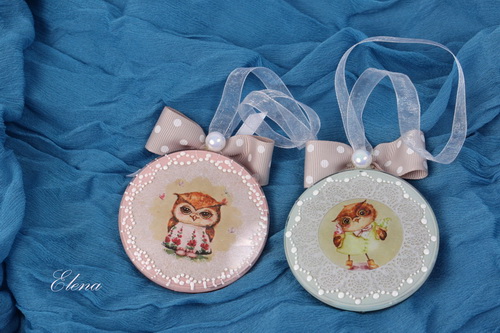 Подвески-медальоны "Совушки" выполнены по мотивам рисунков художницы Инги Пальцер.