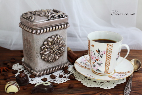 Невеличкий короб для зберігання чаю, кави або спецій чи чогось іншого.