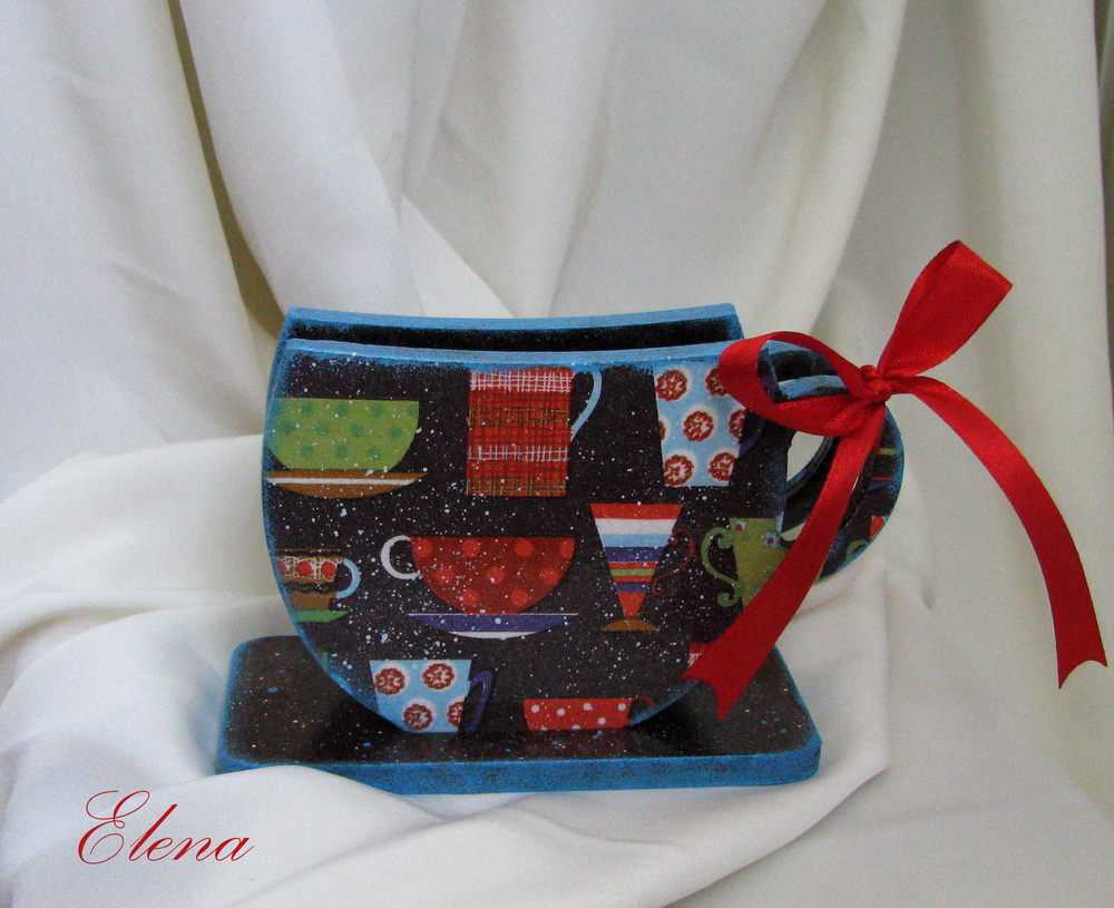 Для салфетницы есть компаньон - чайный домик "Чашечки-кружечки", выполненный в аналогичном стиле.
