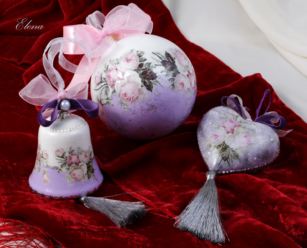 Комплект ёлочных или интерьерных украшений, выполнен в романтическом стиле.