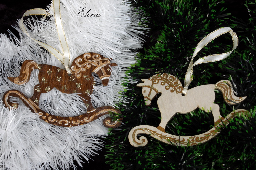 Прекрасное подвесное украшение для вашей ёлочки, замечательный подарок! Одна лошадка светлая, вторая коричневая.