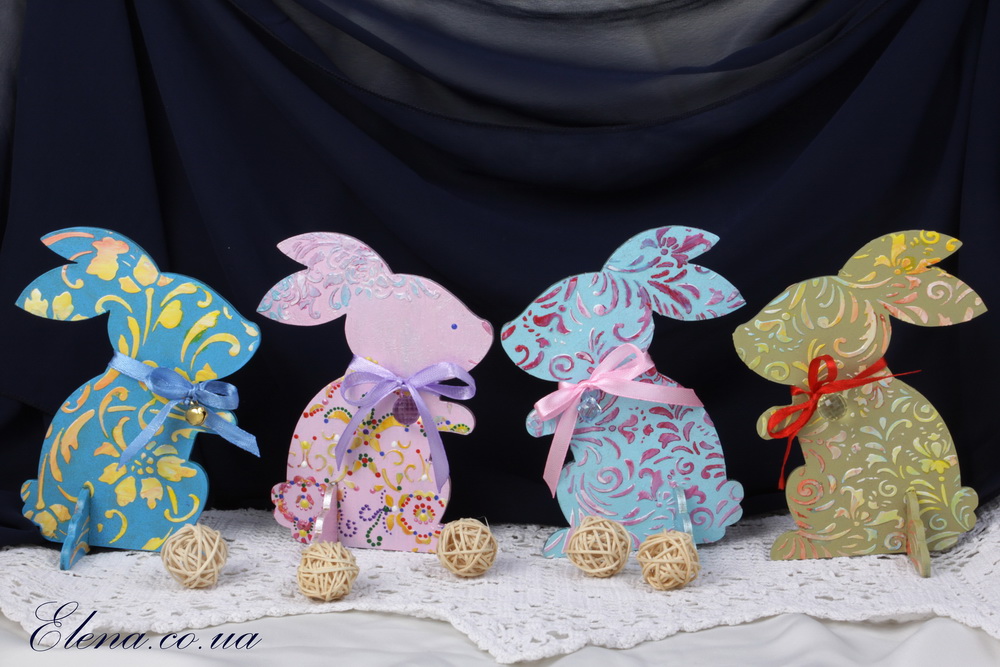 Интерьерные декоративные фигурки зайчиков, украшены бантами и бусинками.