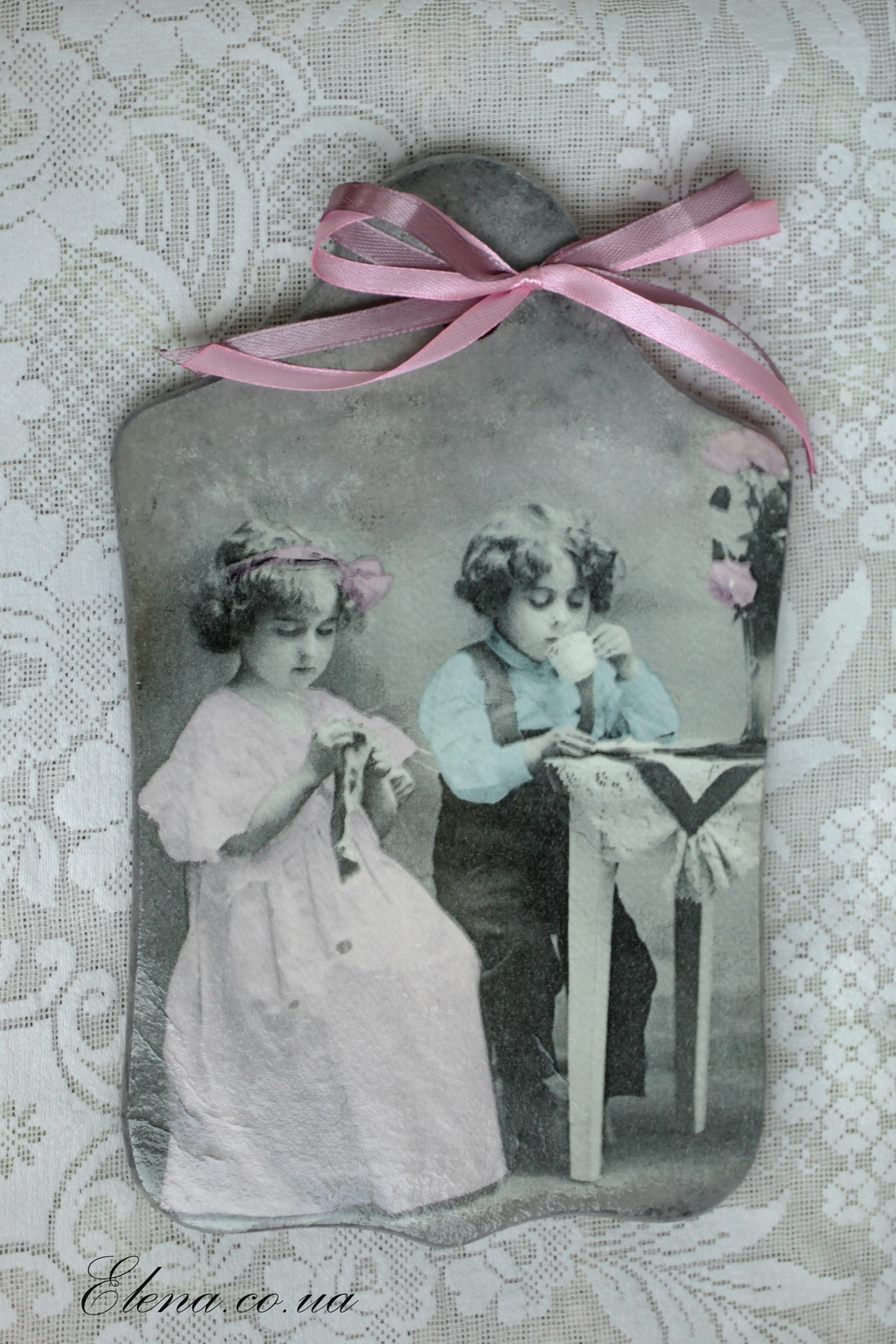 Доска-панно с винтажным фото милых деток, играющих во "взрослую жизнь".