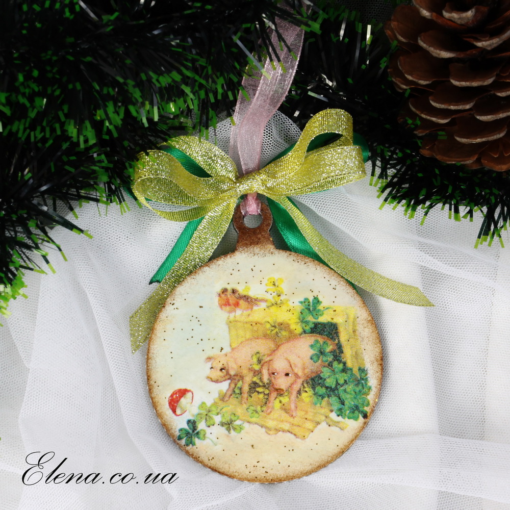 Новогодняя двухсторонняя подвеска - ёлочное украшение с изображением символа 2019 года.