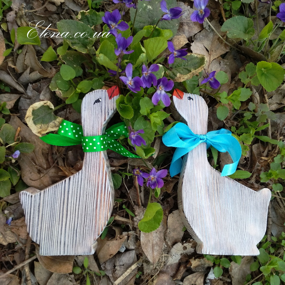 Гуси украшены ленточками, которые при желании легко можно снять. Стоят без опоры.