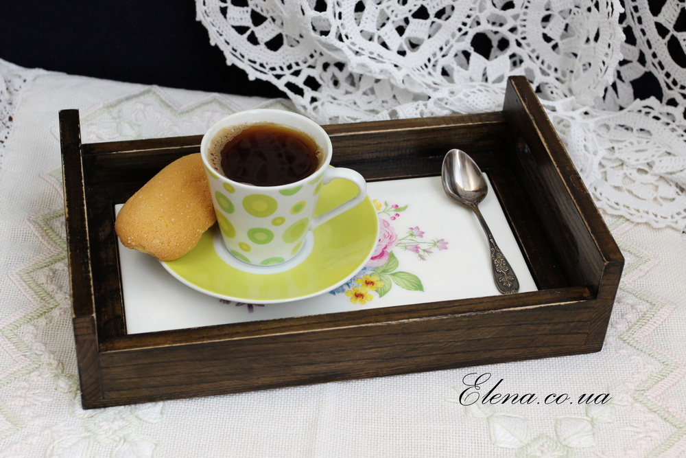Стильный и уютный поднос переносит в детство и напоминает о фарфоровых чашках из бабушкиного буфета... Подари настроение себе или подруге!