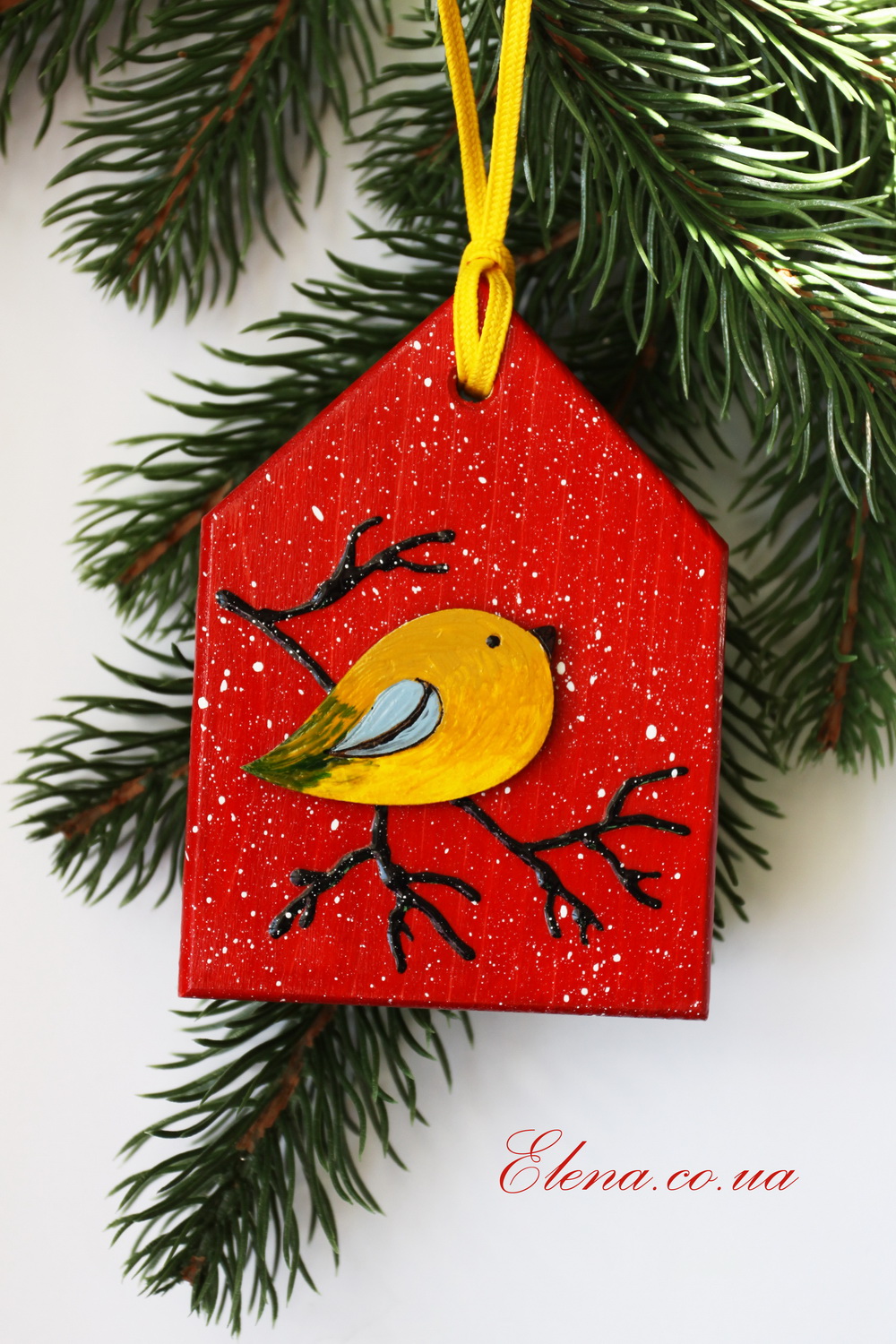 Птичка на ветке на одной стороне подвески, на другой - белая объёмная снежинка. Замечательный новогодний подарок или украшение вашей ёлки.