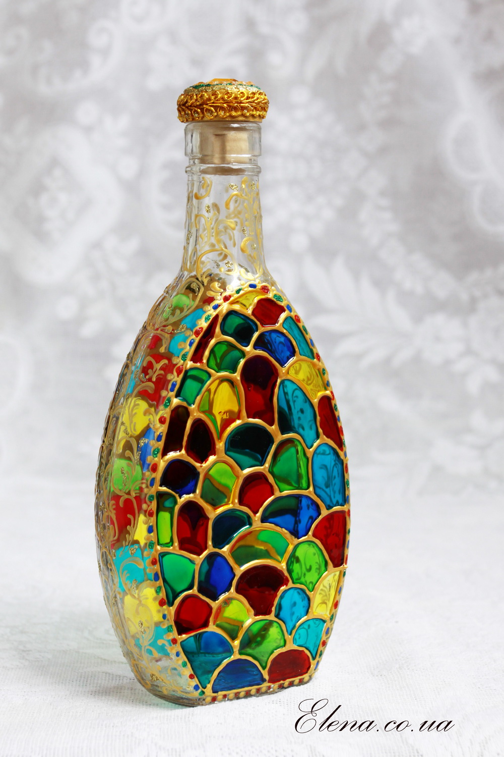 Розписана вітражними фарбами та контурами. На кришечці - стрази.