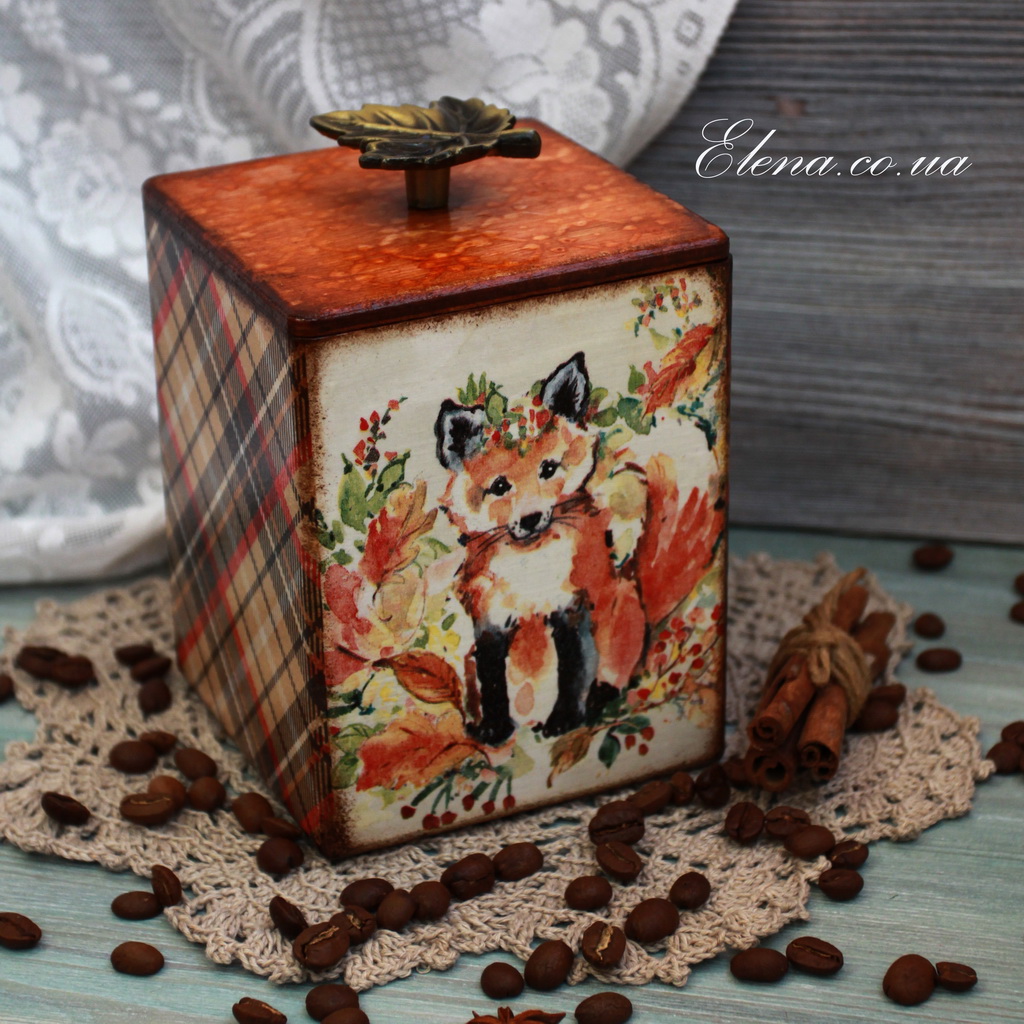 Мила лисичка та класична клітинка створюють осінній настрій. Додатковий штрих - ручка у вигляді красивого листка.