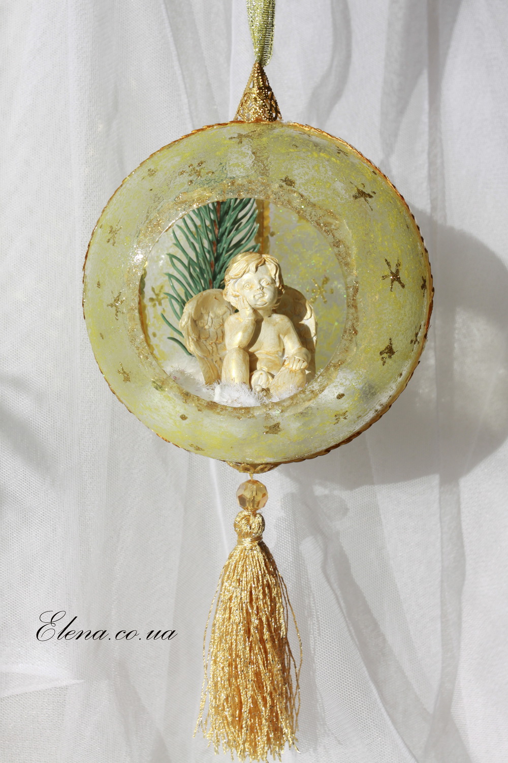 Новорічна прикраса "Куля з янголом"