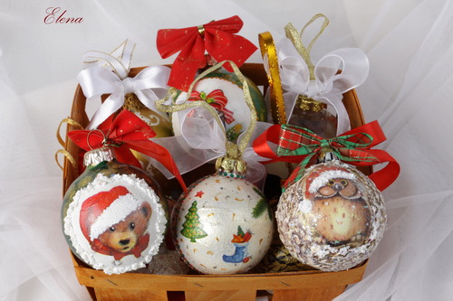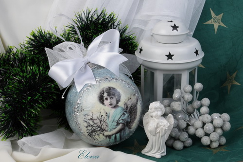 Ёлочное или интерьерное новогоднее украшение - шар в винтажном стиле, украшенный лентами.