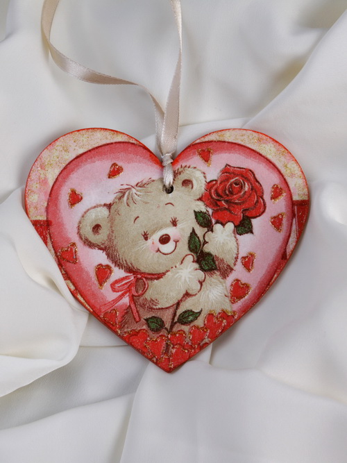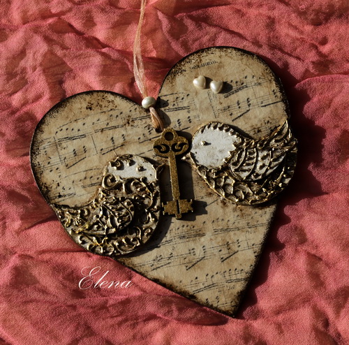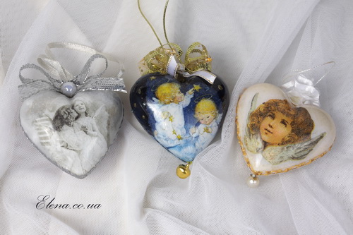 Колокольчик с изображением винтажного ангела, украшен бантами и объёмной накладкой.