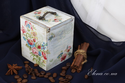 Деревянный короб с выдвижной крышкой, в котором можно хранить чай или кофе.