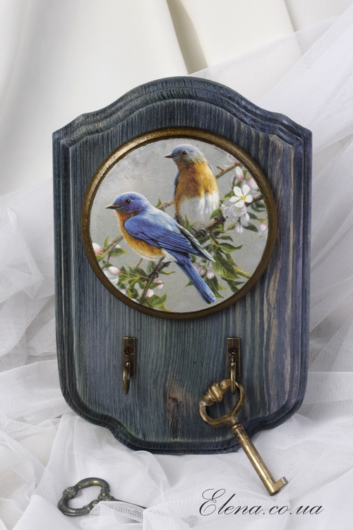 Ключница-вешалка из натурального дерева с накладным медальоном и двумя крючками, крепится на стену.