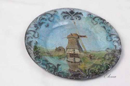 Декоративна скляна тарілка з репродукцією картини голандського художника П.Габріеля.
