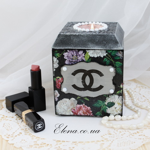 Короб з кришкою, яка може використовуватися як свічник для свічки-таблетки.