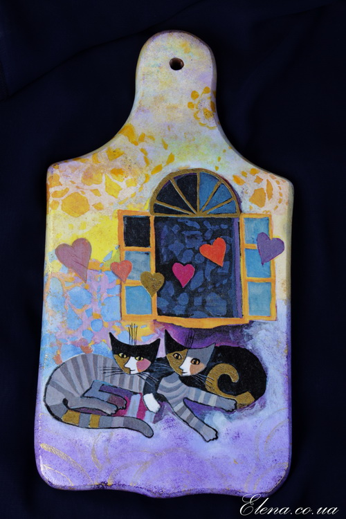 Пара милых деток на фигурных дощечках. Украшены кокетливыми бантиками. На обратной стороне доски нет рисунка, можно резать продукты. Или просто повесить на стенку как панно.