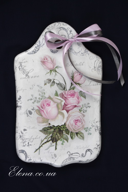 Нежный букет роз на этой дощечке порадует вас и добавит романтических ноток в кухонную повседневность.