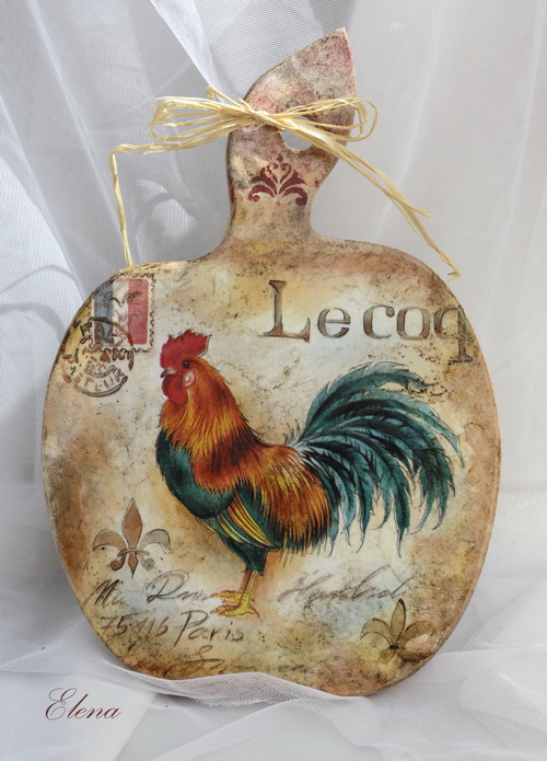 Доска-панно с петушком, символом наступающего 2017 года. Будет талисманом, приносящим удачу целый год. Замечательная идея для подарка!