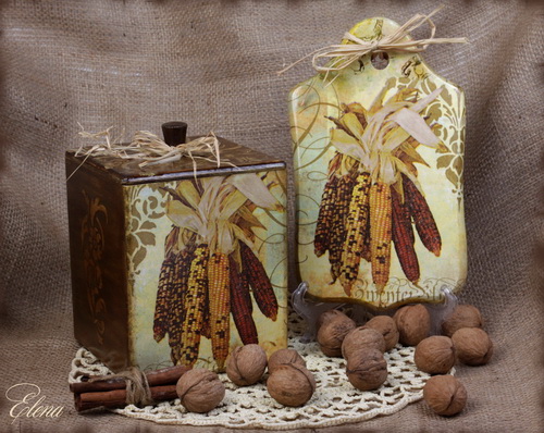 Набор для кухни - конфетница и небольшой короб, в котором можно хранить чай или кофе.
