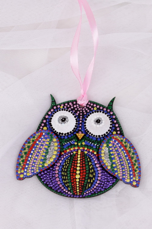 Декоративная подвеска в виде совушки, украшенная разноцветными мелкими точками. Прекрасный подарок для тех, кто без ума от сов!