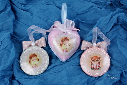 Комплект ёлочных или интерьерных украшений, выполнен в романтическом стиле.