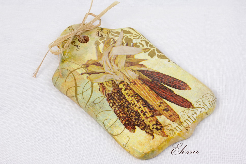 Обратная сторона - ничем не покрытое натуральное дерево, можно использовать как разделочную доску. Рекомендации по уходу: мыть под проточной водой без использования металлических предметов и абразивных чистящих средств, после мытья вытирать насухо. Избегать длительного контакта с водой. Размер приблизительно 15*22 см.