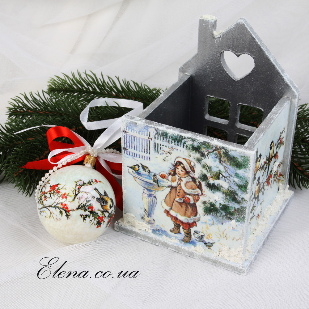Подарочный набор состоит из короба-подсвечника и шарика-ёлочного украшения.