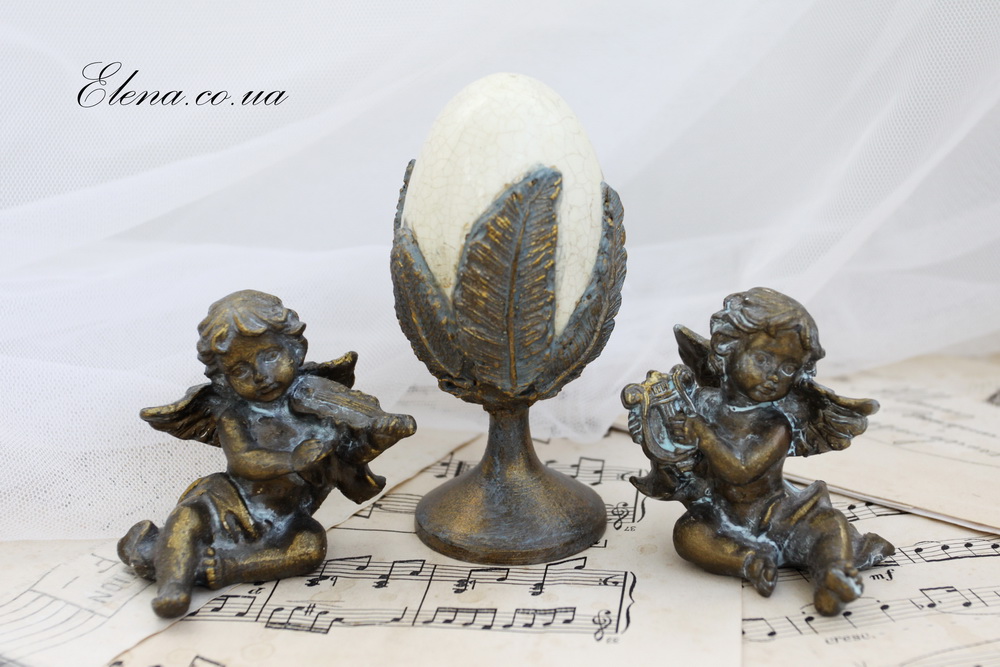 Складається з пари янголят з музичними інструментами та яйця на ніжці.