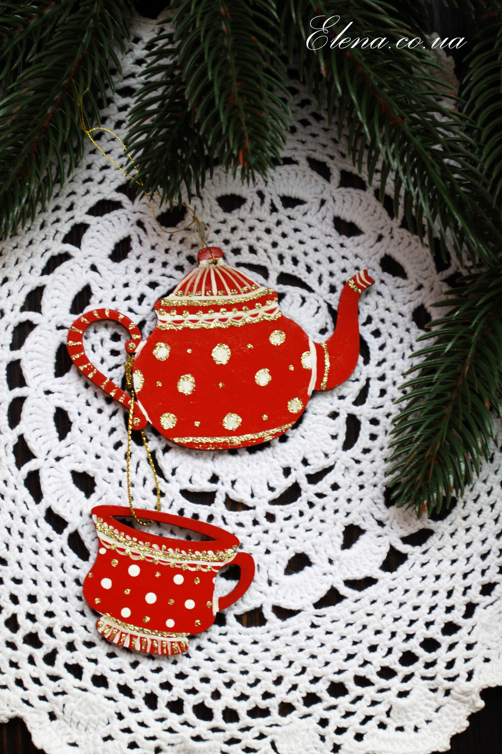 Висота чайничка приблизно 5 см, горнятка - 4 см. Матеріал - мдф.