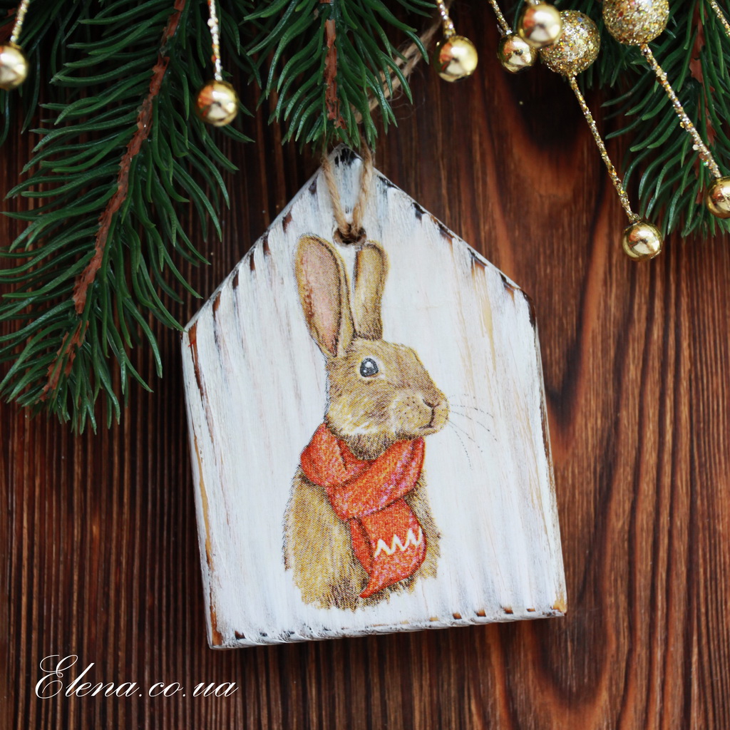 З одного боку - портрет зайця у теплому шарфі, з іншого - будиночок, намальований власноруч.